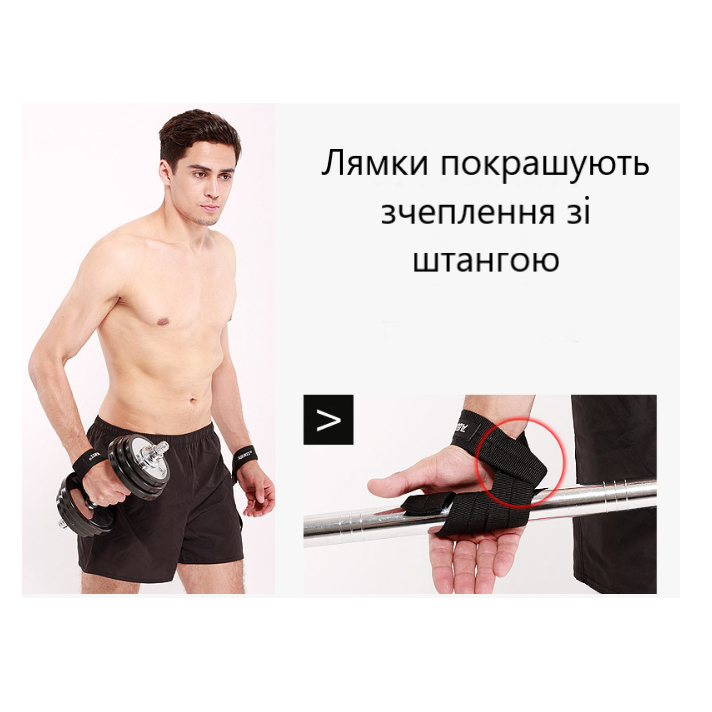 Лямки являють собою ремені довжиною 60 см і шириною 4 см, з вушком на кінці. Простягнувши кінець у вушко, у вас вийде петля, яка одягається на зап'ястя і затягується. Потім залишок ременя обмотується довкола штанги. За допомогою такого аксесуару підвищується сила зчеплення з обладнанням та, як результат, ефективність виконання вправи.