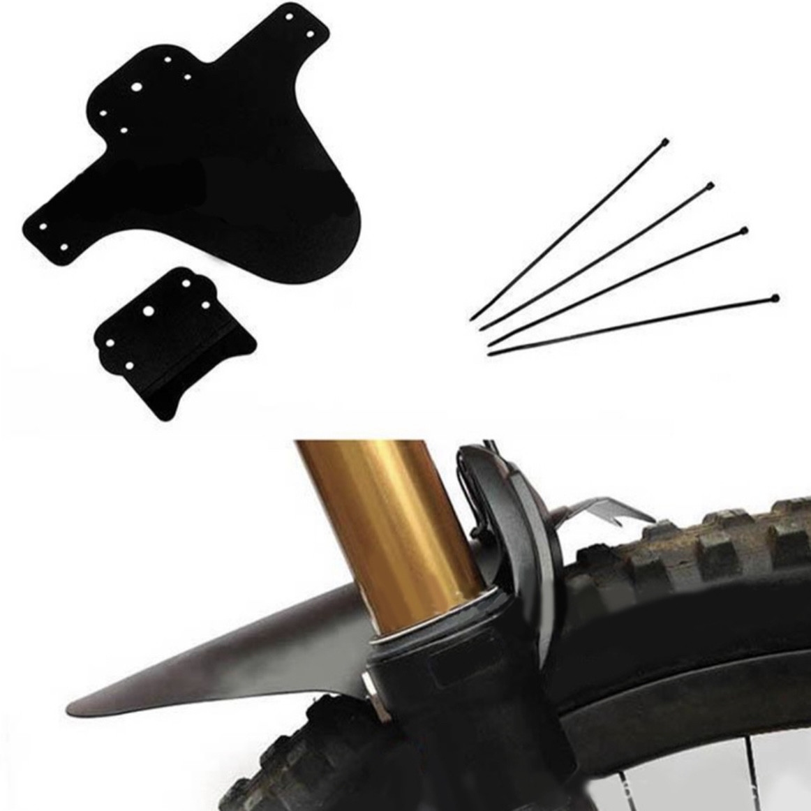 Крило бризковик необхідна річ для кожного велосипедиста. Захистить вас від бризок бруду під час поганої погоди. Крило виготовлене з якісного міцного пластику та прослужить вам довго. Установка дуже проста за допомогою хомутів, які входять в комплект. Кріпиться до вилки велосипеда. Бризковик має простий класичний дизайн у чорному кольорі.