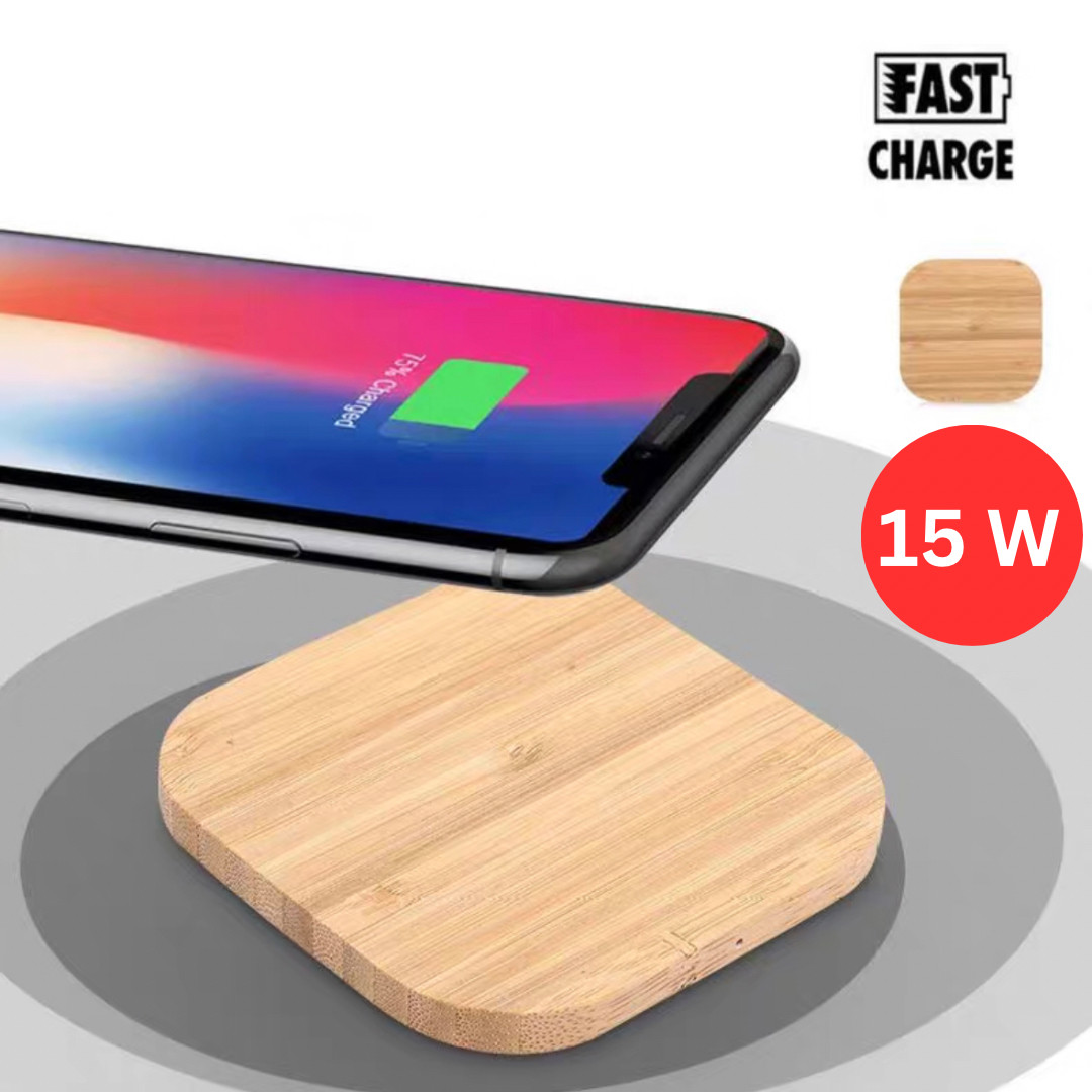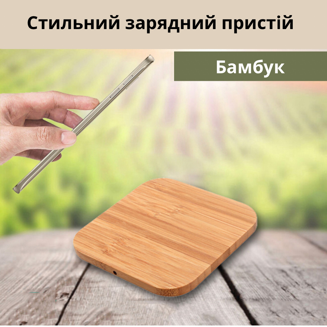 Універсальна бездротова швидка зарядка Qi Wireless 15W зарядний пристрій з бамбука